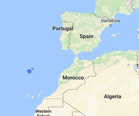 I asked the lady in Portuguese, “Where is the metro station, I want to get into town?” She goes, “The only way into town is via taxi.” At this point, I’m thinking… Why is this woman trying to cheat me? Does she have some kind of agreement with the taxi drivers? I told her, “I checked online earlier and there is a line E that goes from the airport straight into the city center.” She states again that there is no metro and the only way is to take a taxi. I blurt out, “I thought we are in Oporto (the Portuguese pronunciation).” She goes, “We are in Porto Santo, not Oporto.” At this point, I’m kind of panicking. I asked her for a map, but she did not have one. I asked her where we were in respect to the mainland and drew a map of the Iberian Peninsula. She points out to the southwest. I realized at that point that I had come to an island. I took a screen shot of my Google Map location. Holy cow, I was in a location to the west of Morocco, a bit north of the Canary Islands of Spain.