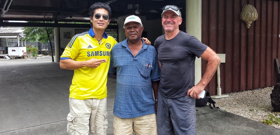 On shore in Guadalcanal, our driver came to pick us up and we met the owner of the guesthouse. The owner Allan Kemakeza was the same guy that I spoke to on the phone the other day when I booked the transportation. The staff at the guesthouse told us earlier that he was the Prime Minister of the Solomon Islands from 2001 to 2006 and it was really true (obviously, I checked the internet). He was an older gentleman in the 60s and he told us about how he had visited many different countries as a politician, meeting Bush Senior and Junior during his presidency. He was a very humble man, did not have a body guard or anything and he was genuinely really nice. We took a picture with him as we greeted farewell and thanked him for the great excursion to Savo.